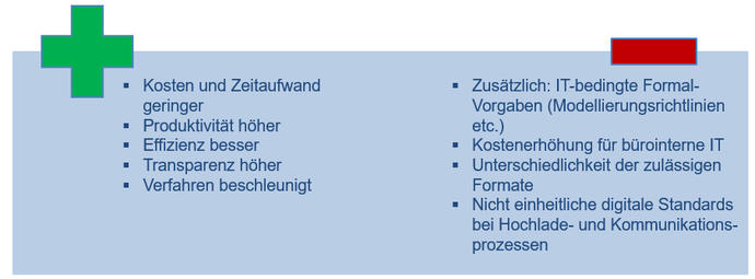 - Zeitersparnis, erhöhte Transparenz, weniger Ressourcenverbrauch