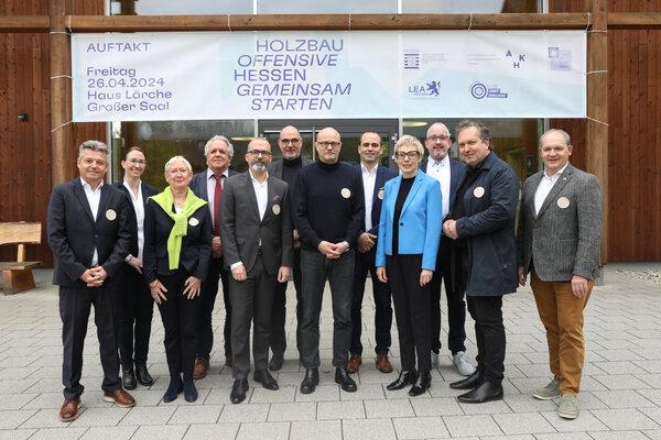 Der offizielle Auftakt der Holzbauoffensive Hessen fand am 26. April 2024 im Forstlichen Bildungszentrum in Weilburg, einem zeitgenössischen Gebäude in Holzbauweise, statt.