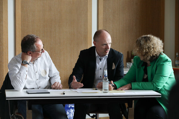 In den Table Talks konnten sich die Teilnehmenden des Auftaktes zu verschiedenen Schwerpunkten austauschen. Die Table waren moderiert durch die Stadtberatung Dr. Sven Dries, welche mit den verschiedenen Akteur*innen der Wertschöpfungskette Holz jeweils eine These als Zielvorstellung einer gelungen Holzbauoffensive Hessen diskutiuerten.