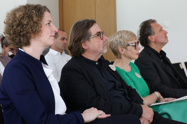 Das Landwirtschaftsministerium empfing das Netzwerk der Offensive mit Grußworten von Staatssekretär Daniel Köfer und Abteilungsleiter Carsten Wilke, die über die Aktivitäten der Partner*innen informierten und erste Erfolge in den Holzbauquoten berichteten. Seitens der Architekten- und Stadtplanerkammer begrüßte der Vizepräsident Holger Zimmer zum zweiten Zusammenkommen des Netzwerkes; lobte die Fortschritte, zeigte aber auch Herausforderungen auf, die es noch anzugehen gilt.