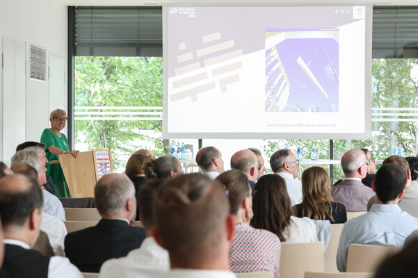 Zimmer betonte, wie wertvoll es sei, dass „nach dem erfolgreichen Auftakt im letzten Jahr das institutionen- und branchenübergreifende Netzwerk erneut zusammenkommt, um die Holzbauoffensive weiter voranzubringen“. Trotz zahlreicher Vorteile kämpft der Holzbau in Hessen derzeit noch mit Vorbehalten. Um in die Umsetzung zu kommen, „bedarf es konkreter Projekte und Akteure, die gewillt sind, die Transformation zur Klimaneutralität auch tatsächlich zu verwirklichen“.