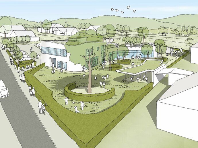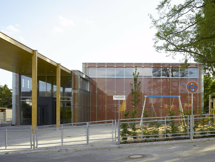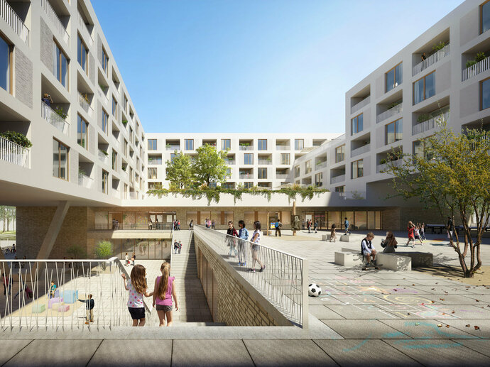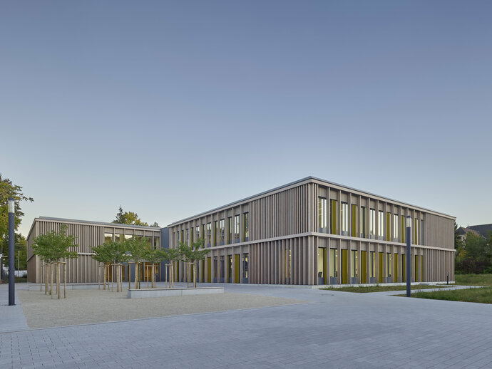 Moderner Schulbau muss als soziale Infrastruktur nicht nur durch seine räumliche Öffnung, Massstäblichkeit oder Materialität an das Quartier eingebunden werden, sondern auch durch eine qualitative Freiraumgestaltung.