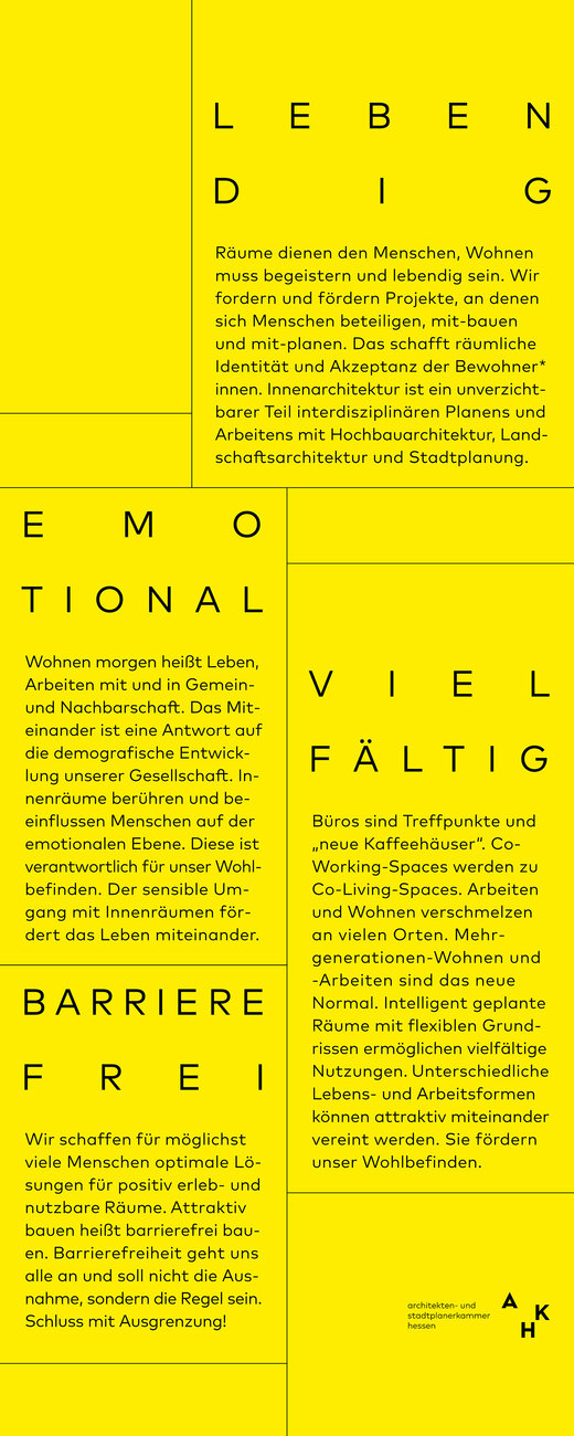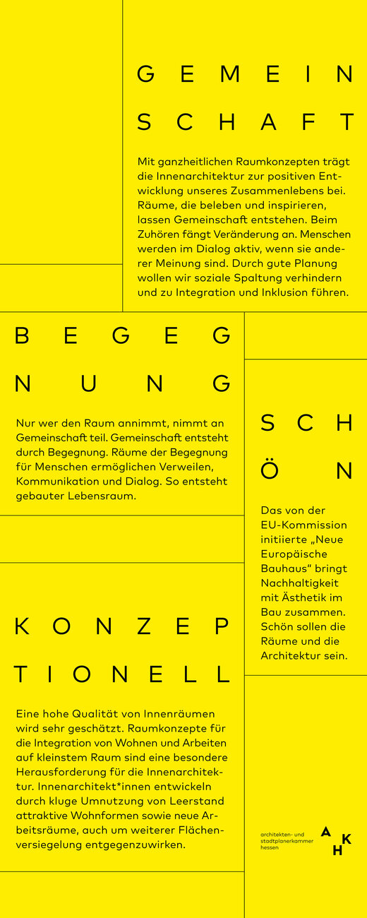 Unter dem Motto: „Mitmachen – Mitwirken – Mitbestimmen“ sind alle Innenarchitekt*innen aufgerufen, sich für ihre Themen zu engagieren.