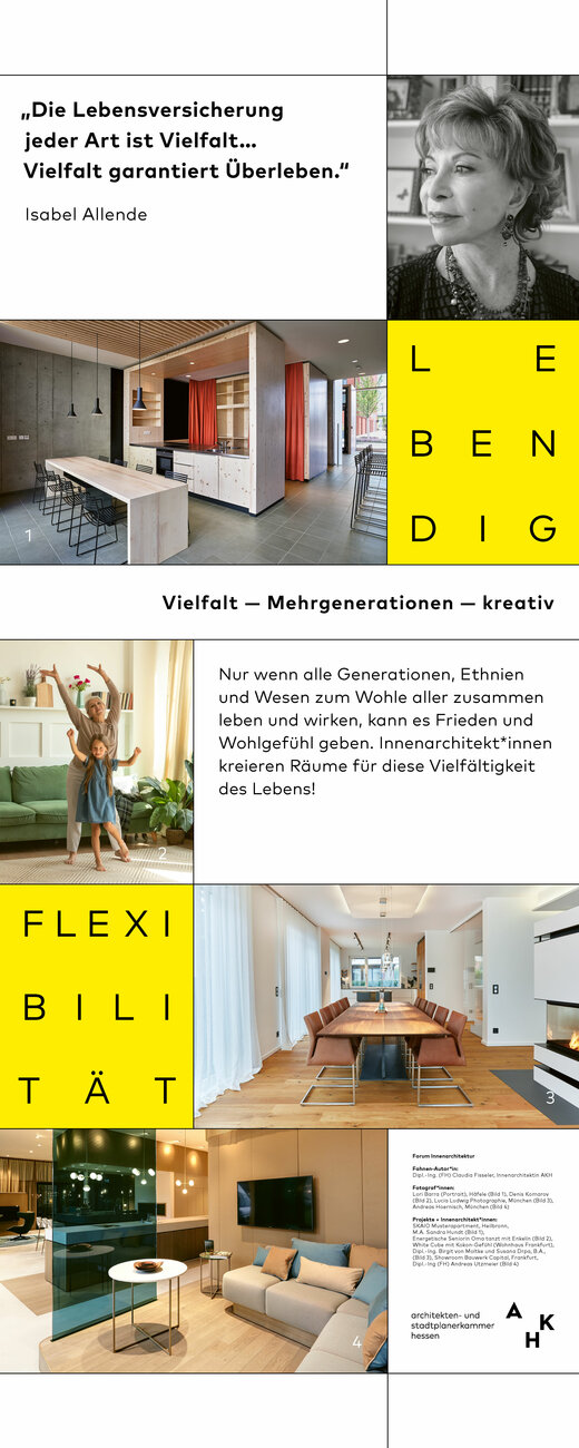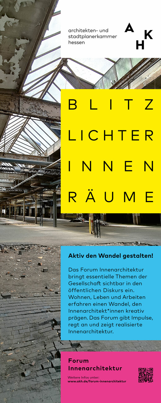 Die Arbeitsgruppe „Zukunft, Wohnen und Arbeiten“ des AKH Forums Innenarchitektur zeigt mit der Wanderausstellung Blitzlichter Innenräume wie vielfältig, menschlich und kreativ Innenarchitektur ist.