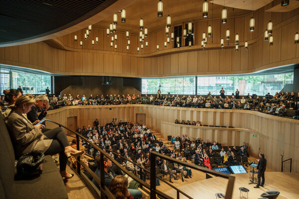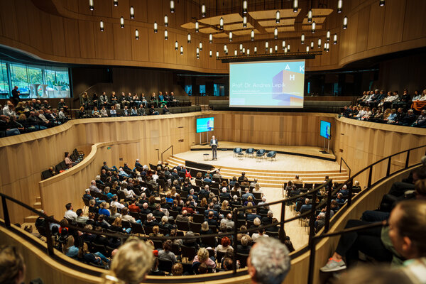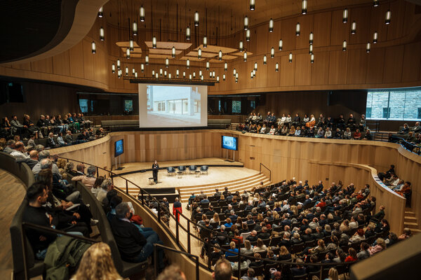 Der Hessische Architektentag ist zum ersten Mal Gast im neuen Konzertsaal des Casals Forums in Kronberg im Taunus. Der Veranstaltungsort mit seiner renommierten Ausbildungsstätte für junge Musiker*innen ist von Staab Architekten GmbH, Berlin entworfen worden und ist 2023 mit einer Anerkennung im Rahmen des Staatspreises für Architektur und Städtebau „Vorbildliche Bauten im Land Hessen“ ausgezeichnet worden.