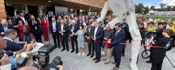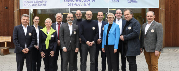 Staatssekretär Daniel Köfer vom Hessischen Forstministerium gibt den Startschuss zur Holzbauoffensive in Hessen