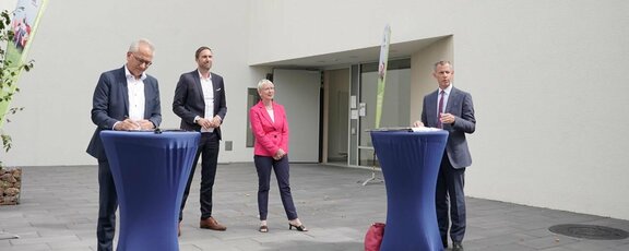Öffentliche Auftraggebende und Planende lernen in Zukunft nach einheitlichem Standard. Eine entsprechende Absichtserklärung über abgestimmte Lehrinhalte zur digitalen Planungsmethode haben Staatssekretärin Anne Katrin Bohle, Bundesministerium des Innern, für Bau und Heimat (BMI), Barbara Ettinger-Brinckmann, Bundesarchitektenkammer (BAK) und Wilhelmina Katzschmann, Bundesingenieurkammer (BIngK) unterzeichnet.
