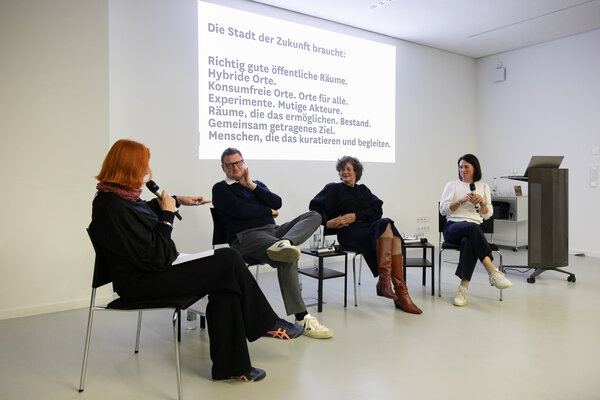 In dem voll besetzten Saal im Haus der Architekten waren Expertinnen und Experten aus Stadtplanung, Architektur, Forschung, Kultur und der Stadtgesellschaft zusammengekommen, um über das Leitbild der „produktiven Stadt“ zu diskutieren. Die Moderation übernahm Andrea Jürges, stellvertretende Direktorin des Deutschen Architekturmuseums Frankfurt. Begrüßt wurden die Gäste von Prof. i. V. Torsten Becker (Vorstandsmitglied der AKH) und Sabine Philipp, Direktorin des sam.