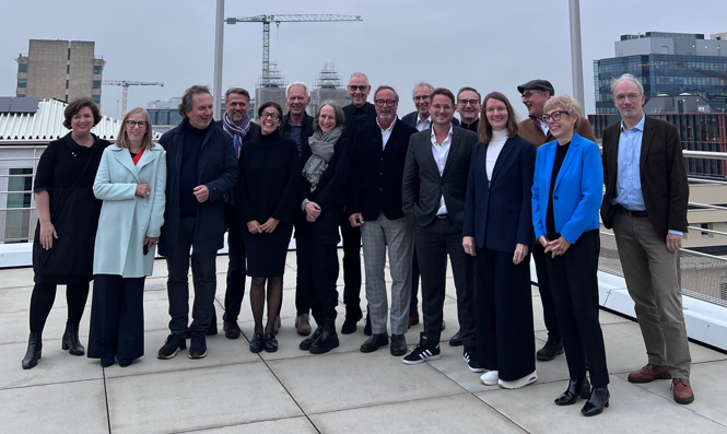Der zweite Tag war nicht nur von hessischen Themen geprägt. Sebastian Schmitz von der Ständigen Vertretung der Bundesrepublik Deutschland bei der Europäischen Union Brüssel erläuterte die Aufgaben der Vertretung in Bezug auf Justiz und Wirtschaftsrecht. Die Vorstände ließen es sich nicht nehmen, anschließend noch die Veranstaltung „75 Jahre NATO: Rückblick und Ausblick“ aus der Reihe Europa im Gespräch zu besuchen, bevor sie mit der Chefarchitektin der EU-Kommission, Christiane Gerlach-Scheerer, zu einer Führung durch das Europaviertel aufbrachen. Nach zwei Tagen informativer Gespräche zog Präsident Gerhard Greiner abschließend das Fazit: „Europa sieht oft kompliziert aus. Vor Ort zeigt es sich aufgeschlossen und deutlich pragmatischer als gedacht. In der derzeitig so herausfordernden weltpolitischen Lage sollten wir gemeinsam etwas daraus für eine gute Zukunft in Freiheit, Demokratie und Rechtsstaatlichkeit machen.“