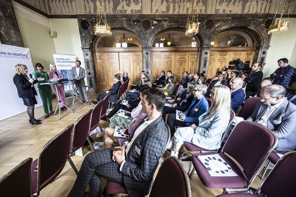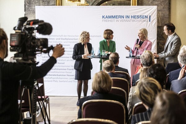 Die hessischen Kammerorganisationen haben im Rahmen ihrer gemeinsamen Initiative „Kammern in Hessen“ heute im Kurhaus Wiesbaden ihr Weißbuch „Perspektiven der Infrastruktur – Versorgungssicherheit für Hessen“ an Heike Hofmann, Hessische Ministerin für Arbeit, Integration, Jugend und Soziales, Prof. Dr. Kristina Sinemus, Hessische Ministerin für Digitalisierung und Innovation, sowie Ines Fröhlich, Staatssekretärin im Hessischen Ministerium für Wirtschaft, Energie, Verkehr, Wohnen und ländlichen Raum, übergeben.